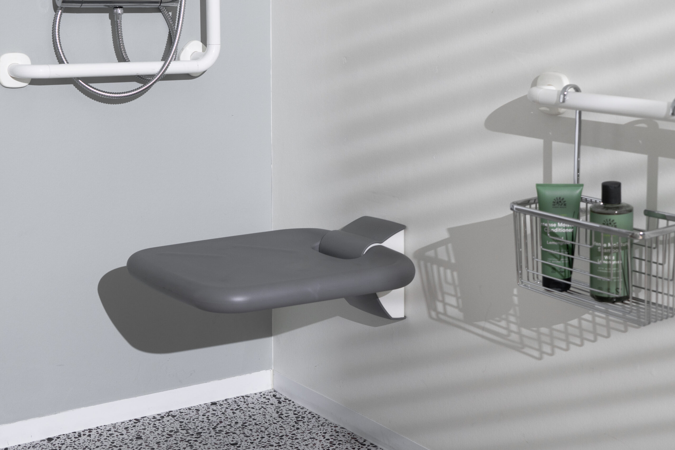 The shower seat provides a safe and comfortable seating option during showers, ideal for wet environments.