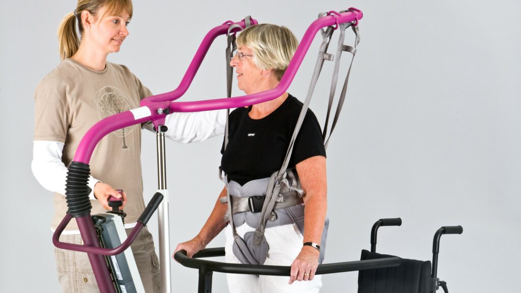 Ropox Lifting Systems and Walking Hoist offer significant benefits for both users and caregivers. Our systems are designed to be comfortable and flexible, making them easy for everyone to use. The All-In-One system aids in promoting a natural walking pattern by managing weight, balance, and posture during therapy. As a combined patient and stand-up hoist, it ensures excellent support and safety for the user, while also enhancing working conditions for caregivers during various lifting tasks.
