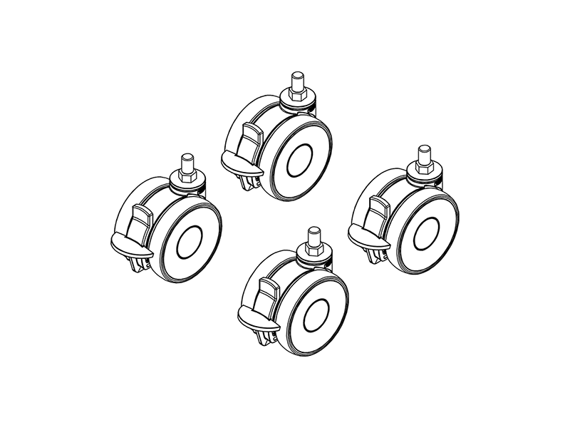 Four pieces of brake wheels that makes the 4Single table frame fully mobile, and increases the height of the frame by +6.5 cm.
