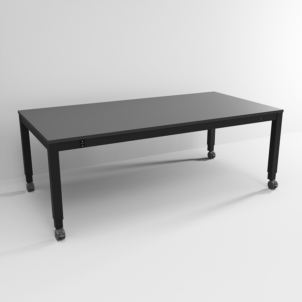 You can adjust the frames by using a handle (manual model) or control switch (electric model). If you mount robust brake wheels on the frame you will get a very mobile table that can be placed almost anywhere in the room according to individual needs.