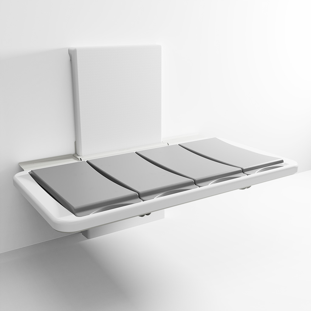 The shower bed has electric height adjustment (70 cm) operated with the a hand control, and the bed can quickly be adjusted to the best position, e.g. for a wheelchair so transferring a user onto the bed is smooth and easy. The shower/changing bed is cleaning-friendly, and can be folded up when not in use to save space in the bathroom.