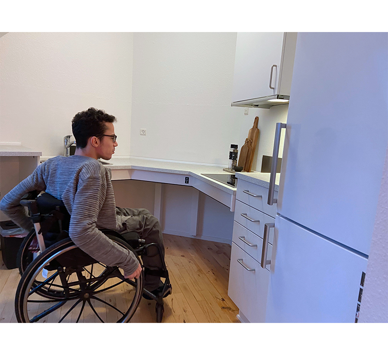 For example, Alexander’s kitchen was equipped with base units, so he could not get his wheelchair under the kitchen worktop. This meant that he sat in an uncomfortable working position in the kitchen. It was also difficult for him to reach the tap, open the cupboard doors and put things in the oven.