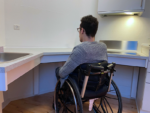 Likewise, the bathroom was difficult to use because it was not accessible for a wheelchair user: The washbasin was too high, and the base units prevented Alexander from getting his legs under the washbasin when washing hands or brushing his teeth.